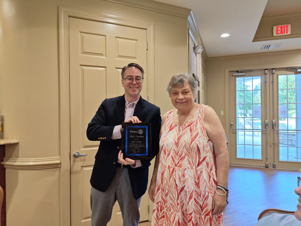 Congratulations to David Houtz for becoming our new Rotary Club president. Thank you for your two years of Service as our president Judy Stang.